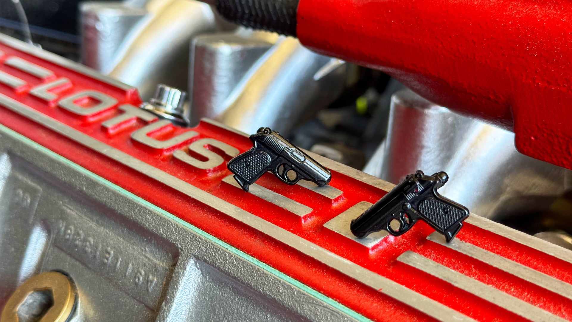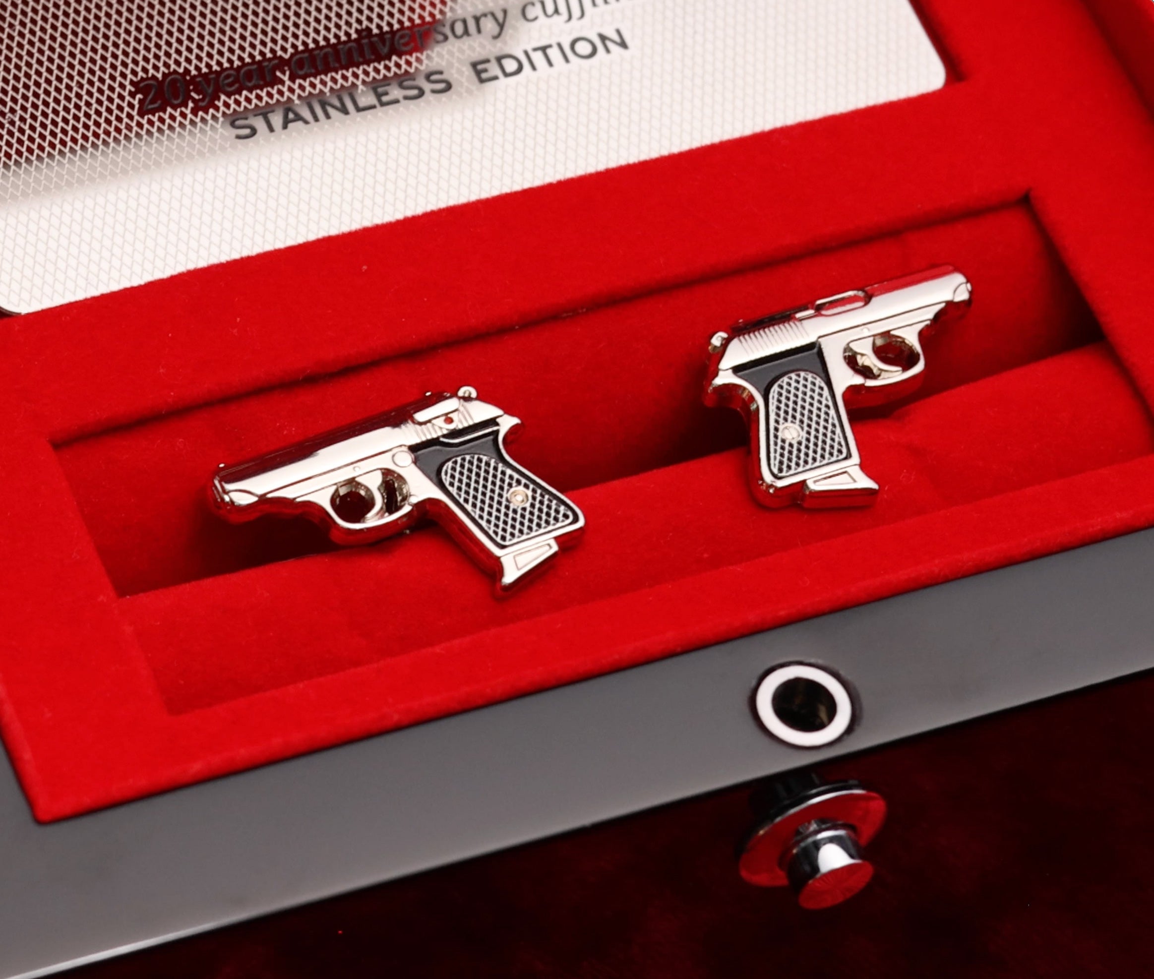 Highly detailed gun cufflinks with two different faces: the left and right side of the gun.